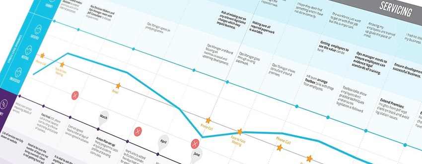 Initial research took the form of an 8-week 'service safari' across 4 UK regions to understand delivery practices and the client service experience, identifying service positives, gaps and improvement opportunities. Activities featured stakeholder interviews and co-creation workshops with clients and operational teams.
